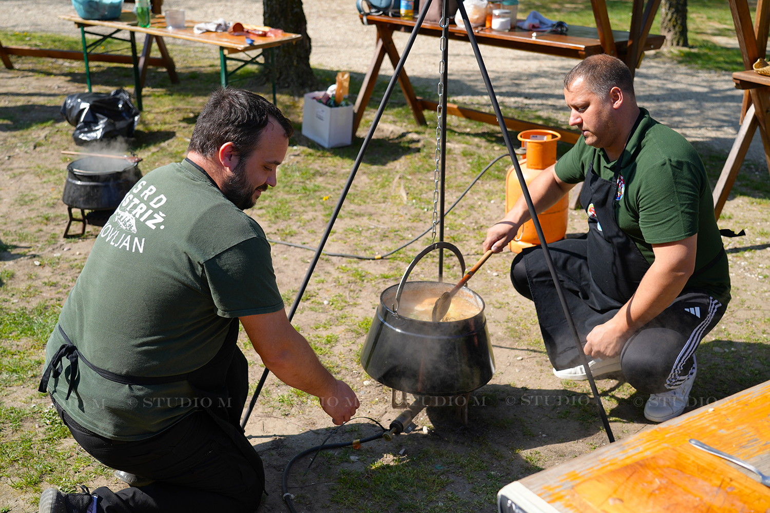 „U ovom loncu pripremamo 40 litara fiša. Trenutno se kuha temeljac, a nakon toga dodajemo glavnu ribu koja je već spremna. Atmosfera je odlična i pozivamo sve da nam se pridruže“, rekao je Igrec.