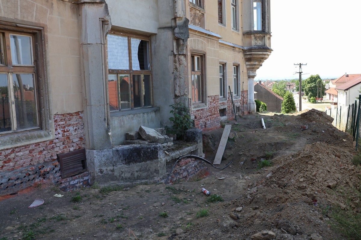 Krovište je sanirano i pripremljeno za završne obloge, a u potkrovlju se ugrađuju čelični profili, postavljaju i gips-kartonski. Paralelno je krenulo i uređenje vanjskog okoliša, izgradnja parkirališta te oblikovanje budućeg engleskog vrta.