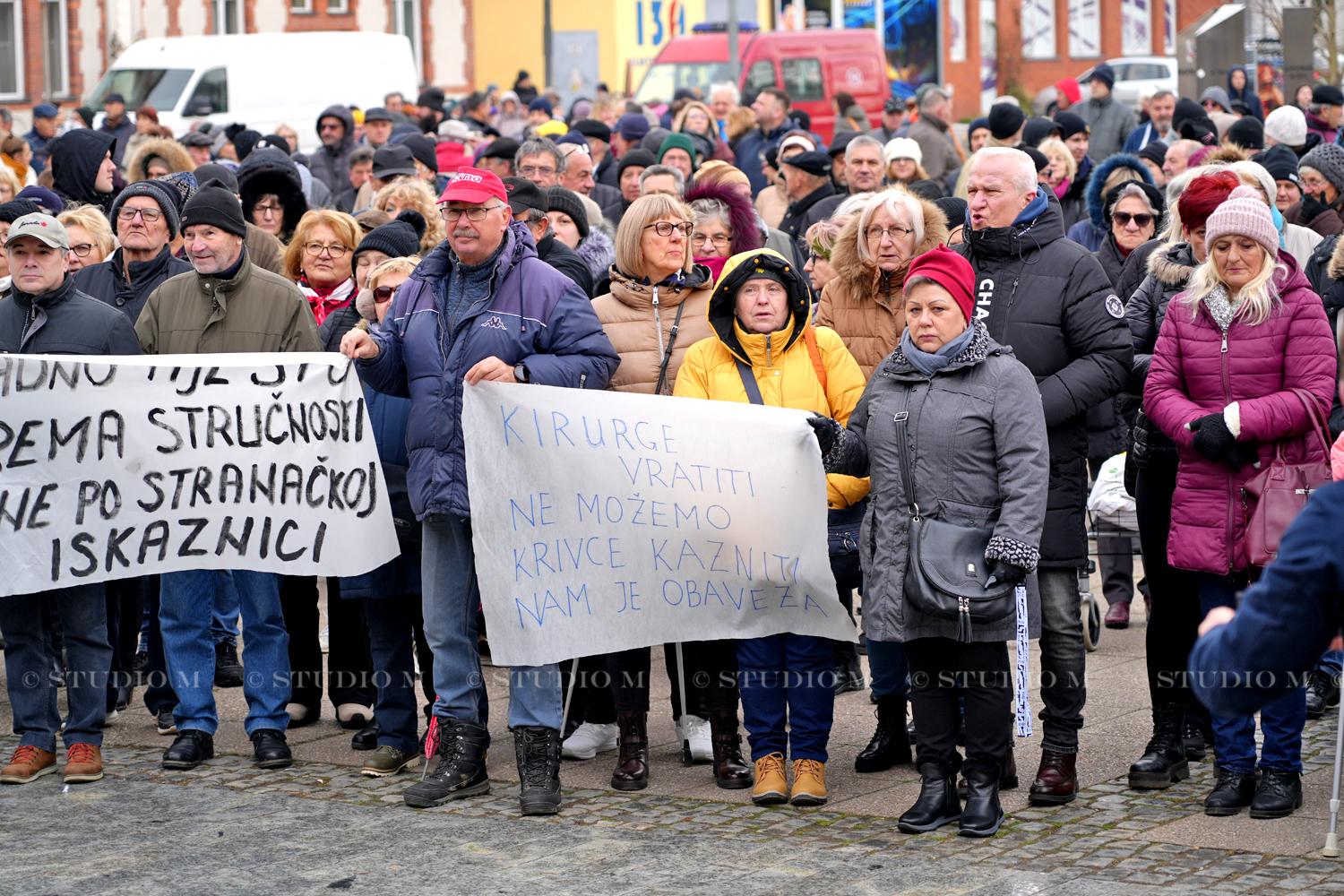 Jedan od organizatora prosvjeda Nikola Varga poručio je da se od prosvjeda neće odustati sve do ispunjenja njihovih zahtjeva. “Ovdje smo da podržimo kirurge, da nam se vrate uz uvjet da se smijeni Upravno vijeće i ravnatelj Hren”, izjavio je Varga.