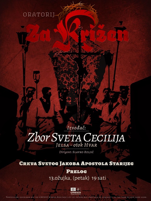 Publika će imati priliku poslušati oratorij „Za križen“, autora Slavka Reljića – dojmljivo djelo nadahnuto petstoljetnom hvarskom procesijskom tradicijom. Oratorij donosi spoj tradicijskih melodija i snažne korizmene poruke, prenoseći dubinu vjere i kulturnog nasljeđa otoka Hvara.